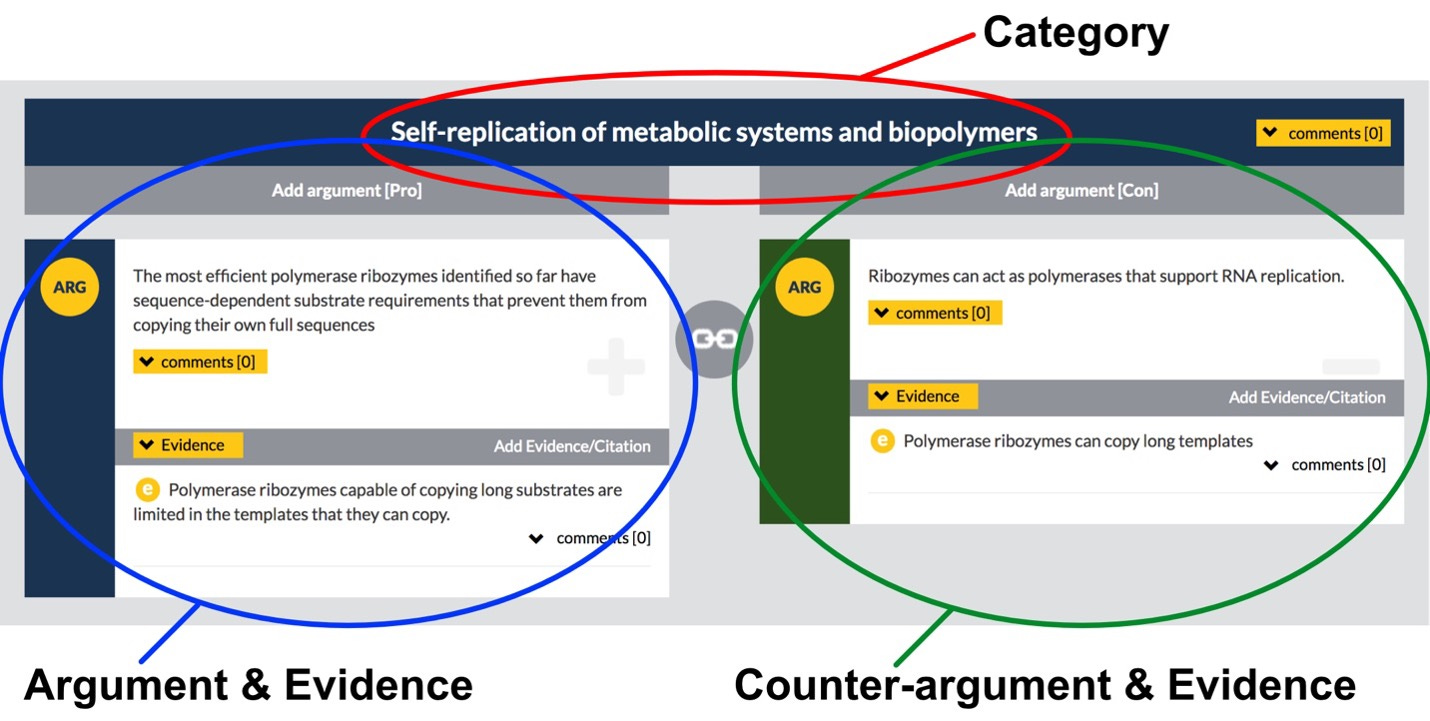 The Hypothesis Browser was intended to be a tool that people could use to explore various open scientific hypotheses by comparing arguments for and against those hypotheses. As we were building it, we tried to capture a range of fields that were relevant to understanding everything from the birth of the universe and the formation of planets to the origination and evolution of life, searching for alien life, and more.