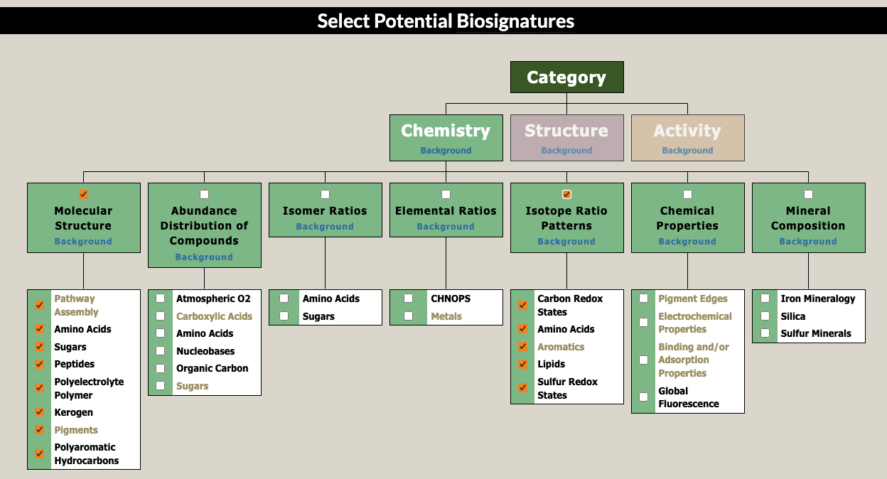 My work with the Center for Life Detection on a tool to explore the use of potential biosignatures in the search for life beyond Earth